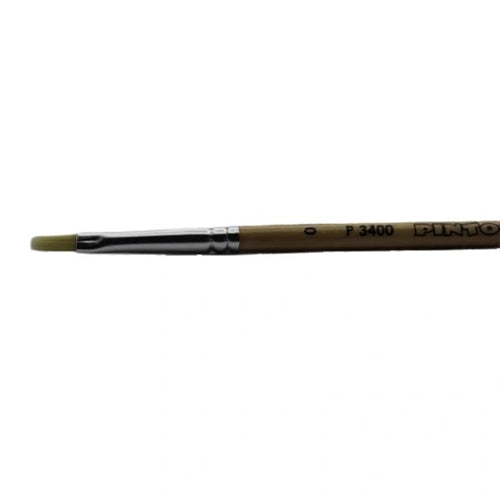 El pincel Pinto P3400 es un pincel plano de cerda sintética marfil, diseñado especialmente para óleo y acrílico. El pelo de este pincel es más suave que el pelo de cerdo, pero igual de fuerte y firme. Utiliza tu pincel P3400 para aplicar pintura al lienzo o al papel, para rellenar áreas, o para dar suavizar el efecto de pincelada en la pintura.